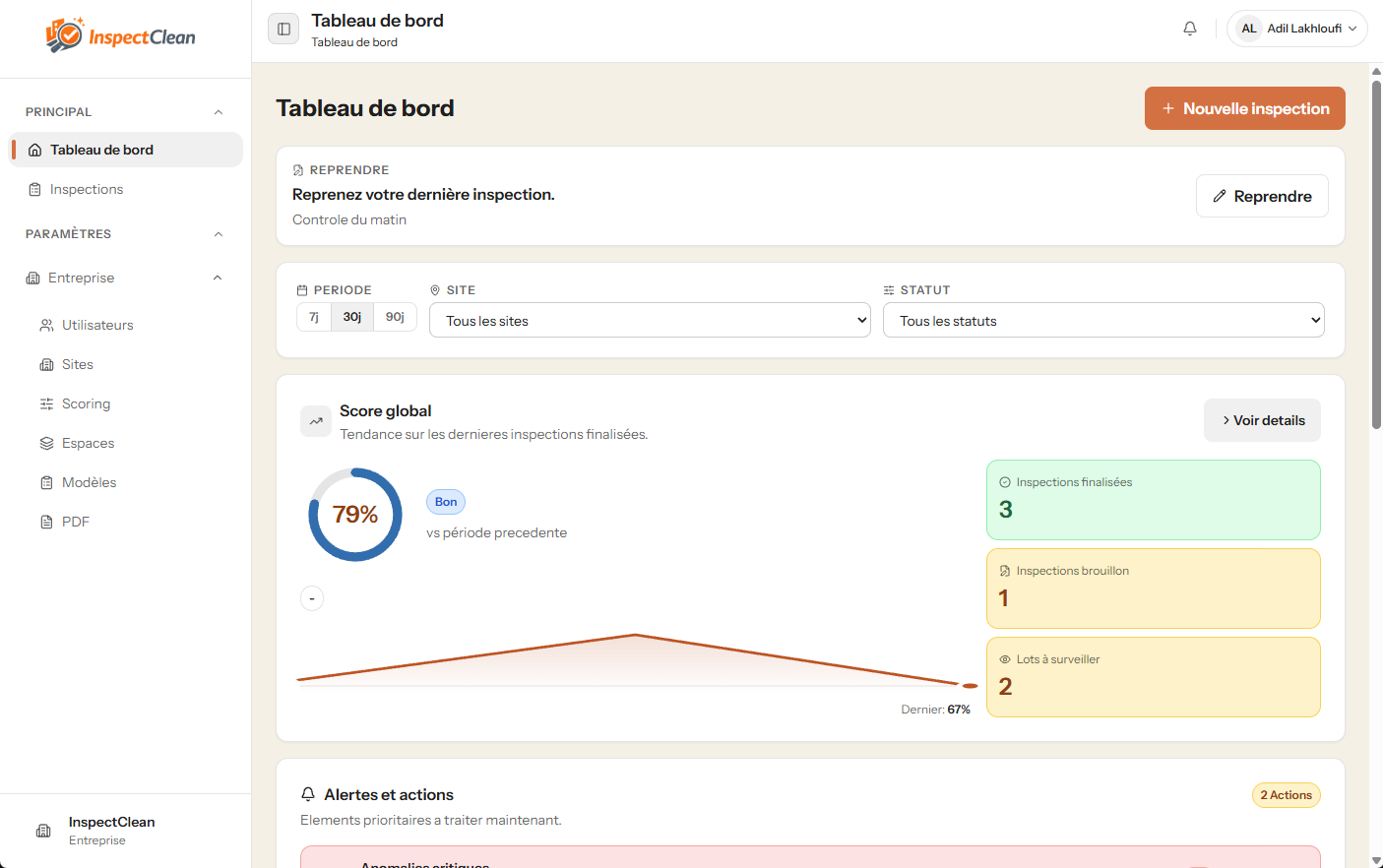 Volg inspecties, acties en teams in realtime vanuit één plek.